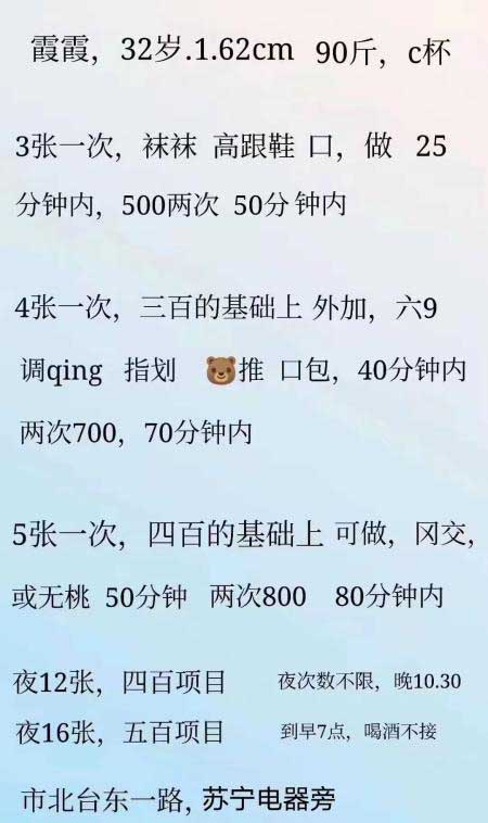 一个小炮房,只有这一个妹子年轻漂亮,是个极品,其他的几个年纪都偏大了,都是2张起,我周四晚上去的都有 ...