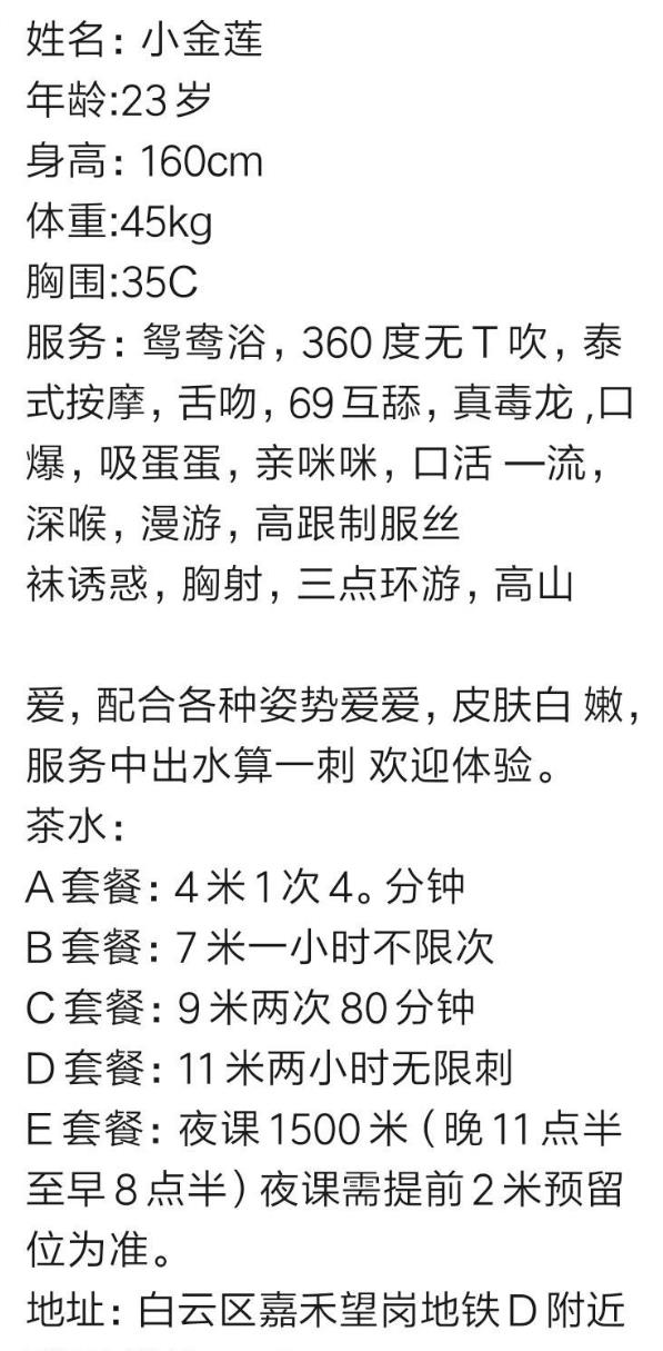 年龄23,甜美颜值。皮肤正常肤色。身材前凸后翘160高,胸围C,总体不算差。待人温柔,态度确实是敬业。流程 ...